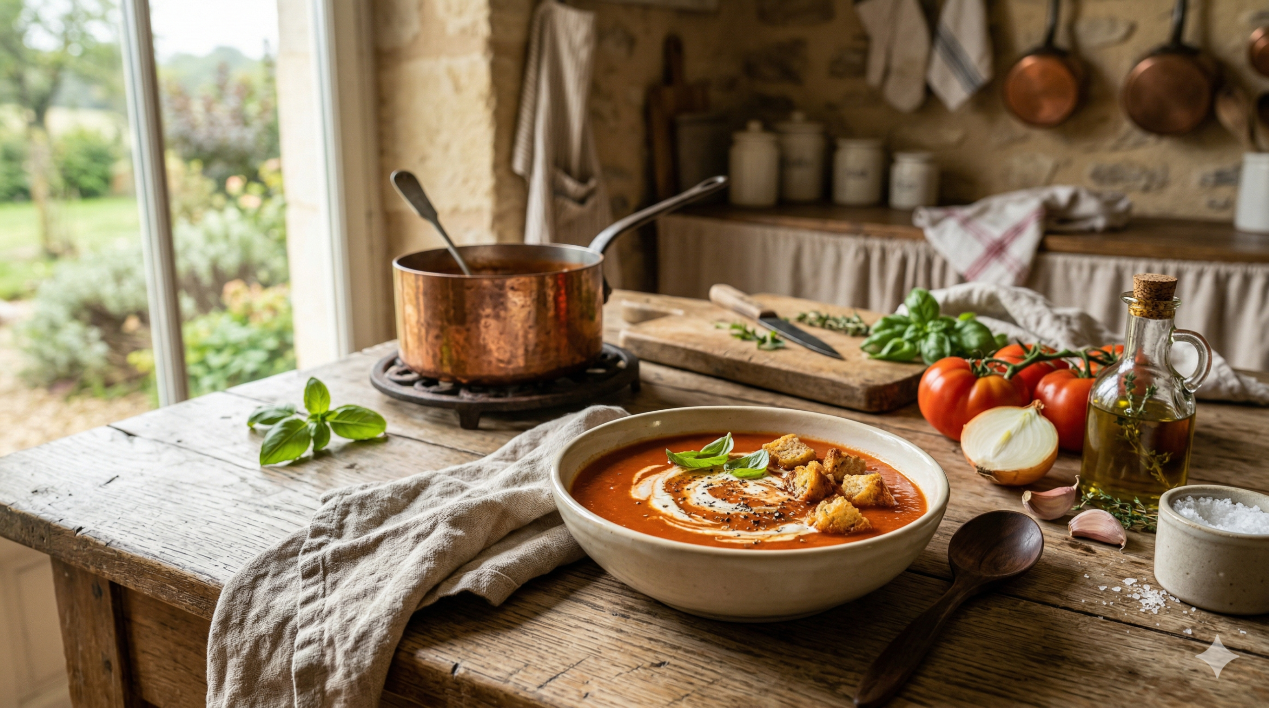 La texture est aussi importante que le goût. Une soupe trop liquide manque de caractère. Une soupe trop épaisse ressemble à de la sauce. Nous recherchons cet équilibre : onctueuse sans être pâteuse.